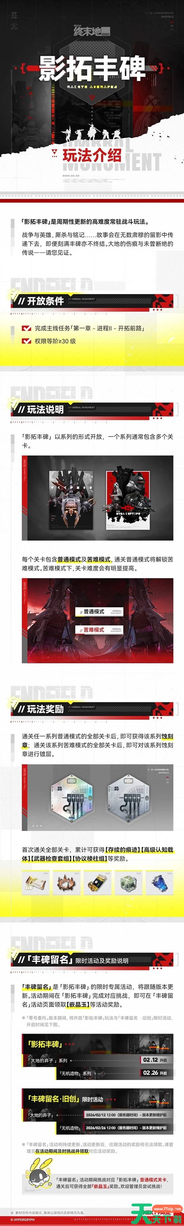 明日方舟终末地中影拓丰碑将在2月12日上线,不知道究竟应该怎么玩的玩家请看下方由官方为大家带来的明日方舟终末地影拓丰碑玩法介绍,希望能够帮助到大家。