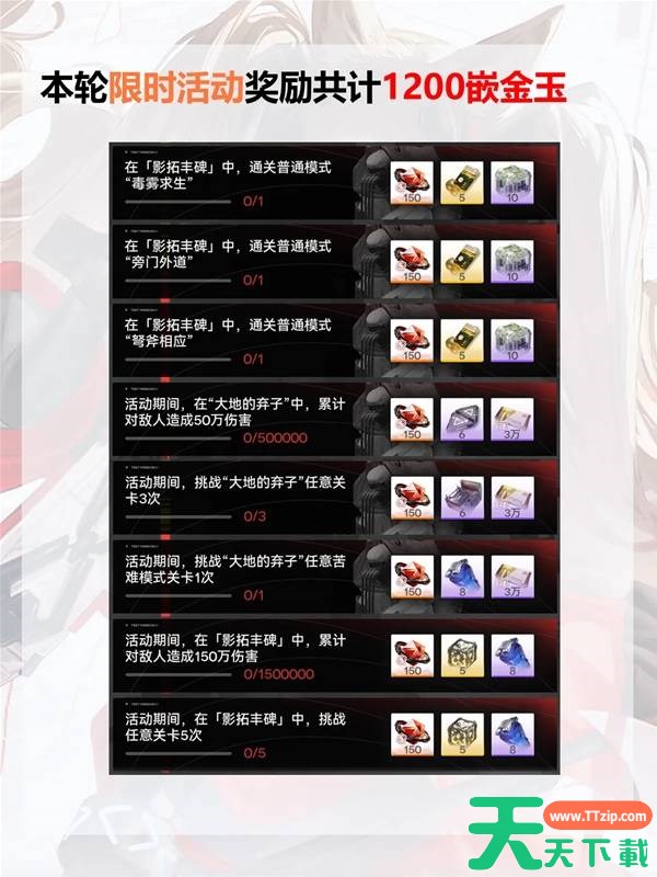 以上就是天天下载TTzip为大家带来的明日方舟终末地影拓丰碑玩法奖励说明的内容解读了,大家都了解了吗?还想要了解更多的内容那就请继续关注天天下载(ttzip.com)吧。