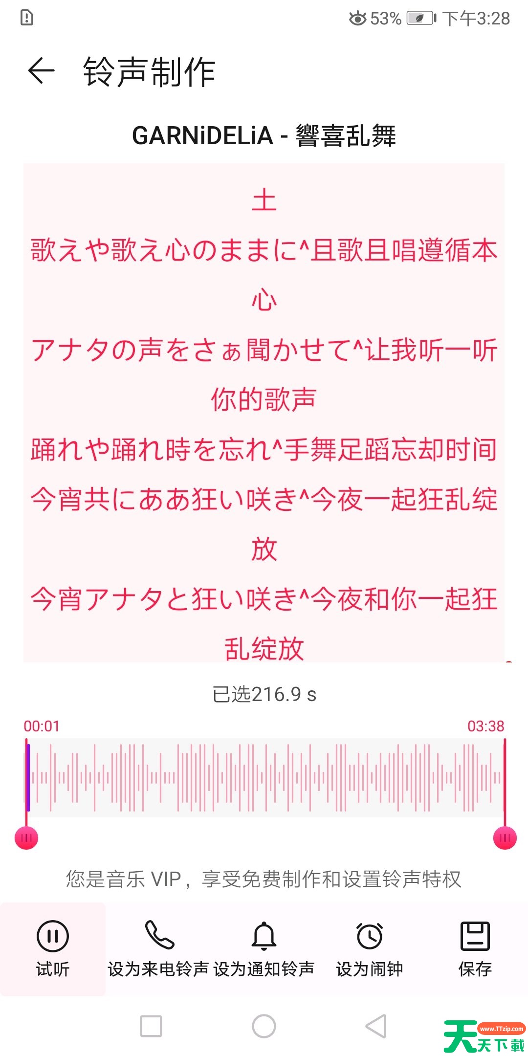 3、在铃声制作页面中,将整首歌选中,并点击“保存”。