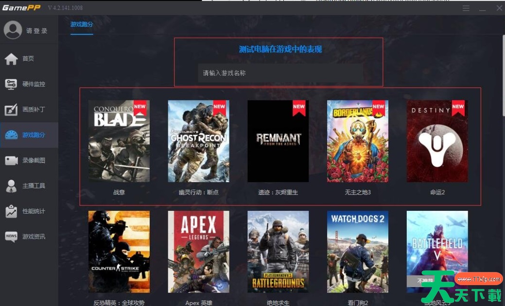 2、进入跑分界面,选择需要测试的游戏。