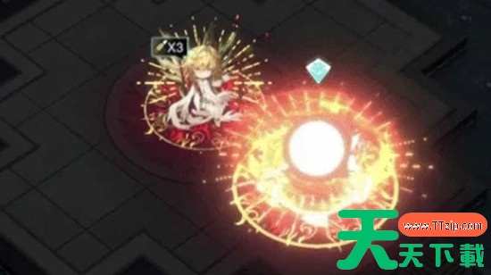 当她处于天时往复状态时,如果范围内的敌人被我方其他单位攻击并受到伤害,太阳神鸟就会自动消耗一枚礼弹发动追击,造成基于攻击力百分比的构素伤害,并叠加一层灿金效果。当灿金叠满后,追击会附加额外的构素伤害。