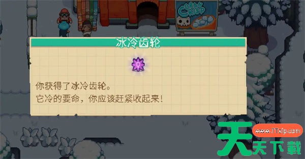 进入『商店』后,『商人』说『牛奶』因为房屋有几个大洞被冻住了,需要『保温杯』装『热水』化开,根据提示可知『保温杯』在地图左上方的人物手中,玩家获得技能『金铲铲』。