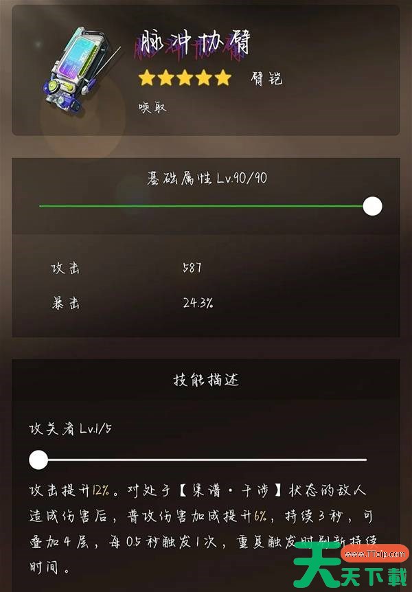 高性价比替代:脉冲协臂(二期常驻五星)。暴击副属性,攻击提升并对处于【集谐干涉】状态的敌人叠加普攻伤害加成,可达专武约90%的水平。