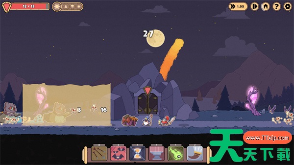 怪物会在夜间发动攻击,试图摧毁矿井大门。如果有敌人到达大门,他们会造成 1 点伤害(部分怪物会造成更多伤害)。你的英雄会自动攻击,阻止这一切发生。