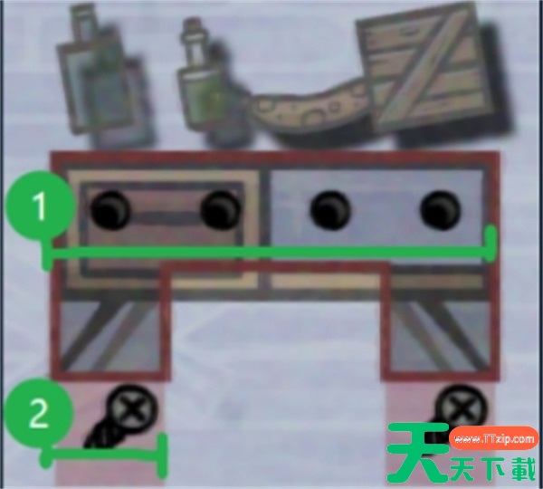 如图所示,家具的(1)提供了4个孔洞位置,能够让上面四个小物件的"螺丝"放进去,所以只要让这个桌子满足摆放条件(2)就可以额外获得新的4个位置摆放空间。