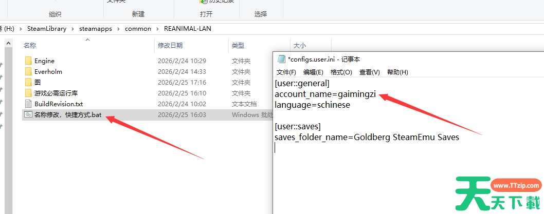 双击打开游戏目录下的“名称修改,快捷方式.bat”,找到“account_name=gaimingzi”,把“gaimingzi”改成自己想要的名字保存。