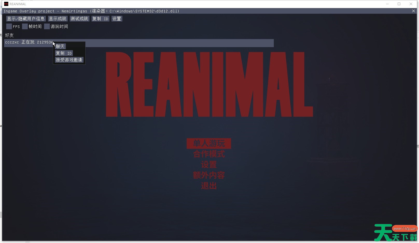 2). 平台载入:\Everholm\Binaries\Win64\REANIMAL.exe,启动。