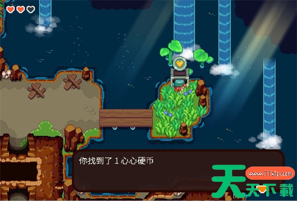 继续向前,用炸弹破坏巨石进入右侧孤岛,获得一个心心硬币。