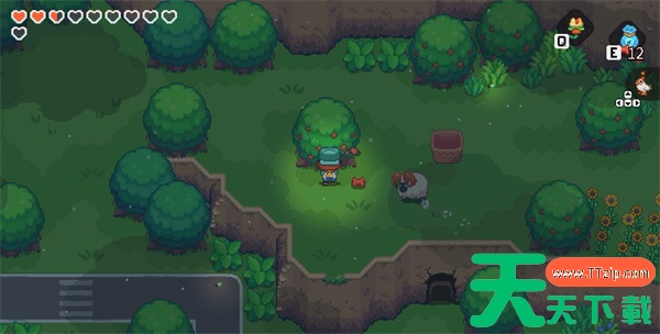 在果树周围摆放奇迹零食,吸引山羊冲撞果树,便能捡起掉落的果子,将其放进篮子。