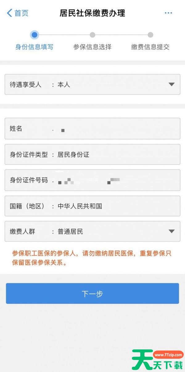 第三步:自动获取个人信息,点击下一步。