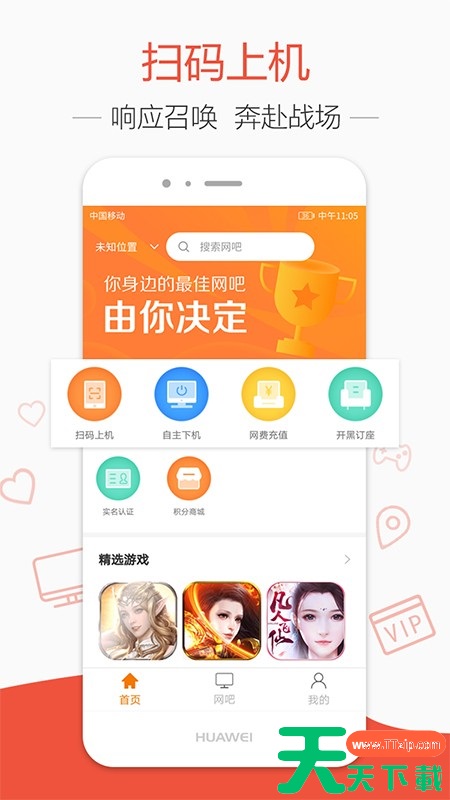去上网app可以帮助用户快速扫码上机和自主下机,可以查看附近的网吧分布,能按照距离星级等条件进行筛选,可以关注感兴趣的网吧,支持在线充值和订座,可以筛选预留时间,可以在手机上完成实名认证操作,还有非常详细的网吧明细,消费透明化!