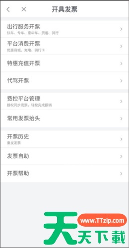 3、然后再选择【开具发票的类型】,如出行服务开票、平台消费开票、特惠充值开票等。