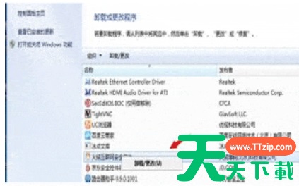 2、在列表中找到【火绒互联网安全软件】,右键选择【卸载/更改】