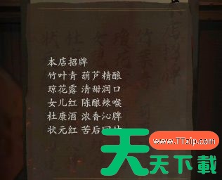 1、墙上的酒:使用酒杯尝完之后去楼下进行对应。