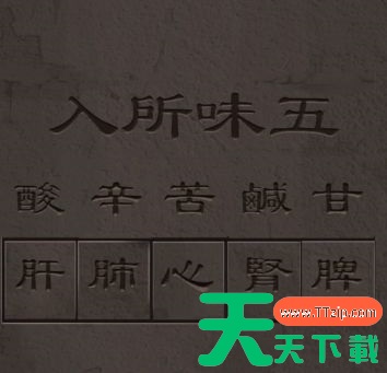 2、厨房的墙中五味对应的器官如图所示。