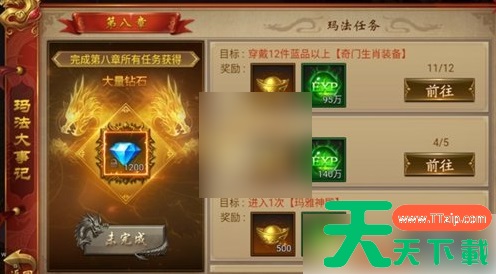 2、完成玛法大事记任务可以获得大量元宝、精英。完成完整篇章,还能领取绑钻、生肖、锋芒装备!