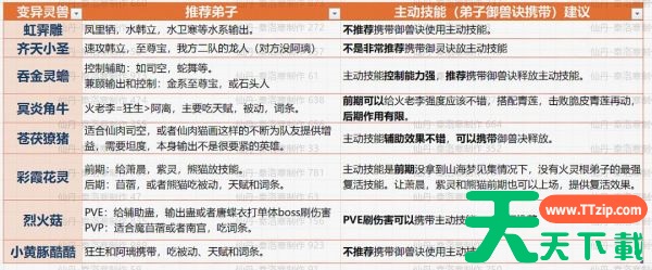 每种变异灵兽定位不同,适合的弟子和玩法也不同,以下将一一分析。