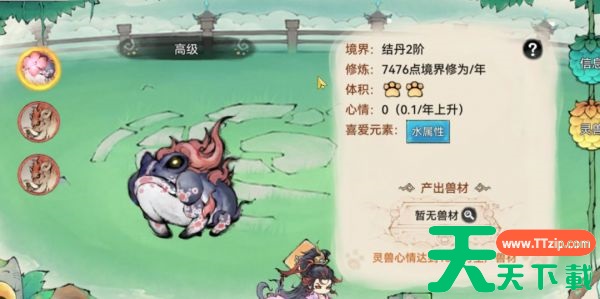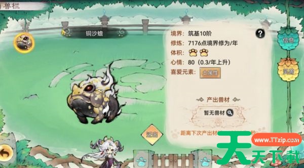 基础兽栏可以给灵兽每小时恢复0.3点心情。