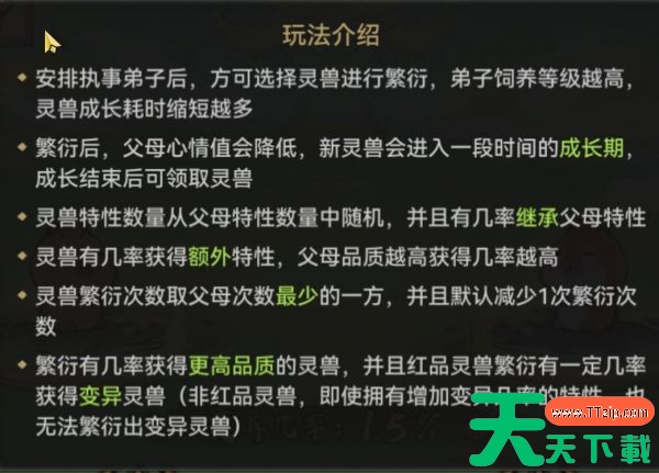 安排弟子以后,就可以进行灵兽配种和繁殖了。