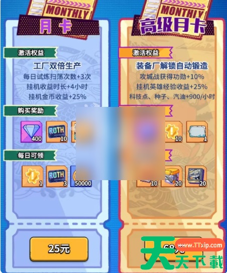3、普通月卡权益(25元):每日试炼扫荡次数+3就很夸张了,要知道VIP11的扫荡次数也只能+2,有三个试炼副本,就是每日多9次扫荡;前中期金币一直是极其稀缺,所以月卡挂机金币收益+25%和每日可领的5w金币都很有必要,挂机收益时长+4小时和累计100张招募卡,虽然与前面的比起来显得无足轻重了,却更彰显了月卡T0性价比的地位,最重要是开启第二生产位同时生产(极大提升生产效率)。