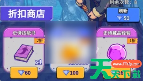 每天都有免费刷新2次,以及钻石刷新次数,钻石刷新次数是跟VIP等级有关,初始1次,V5是2次,后面每提升1级VIP就会增加1次,到V12就封顶10次,折扣商店产出的材料都是游戏内常见的一些材料,都不建议去购买,只要购买1次能完成每日任务即可。