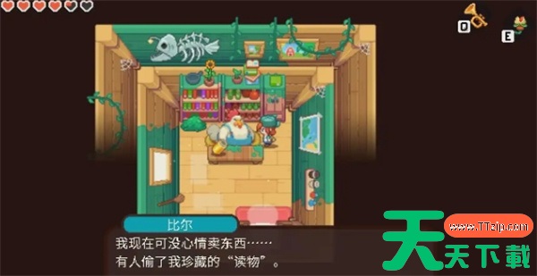 在霸鲁沼泽的湖心小店,店主因为自己喜欢的读物被盗而无心经营。