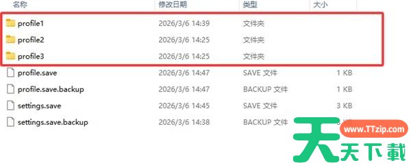 三个profile1/2/3文件夹对应三个存档位置。