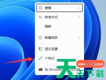 1、首先我们右键点击桌面空白处,选择菜单中的“个性化”。