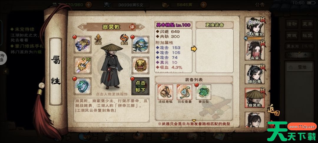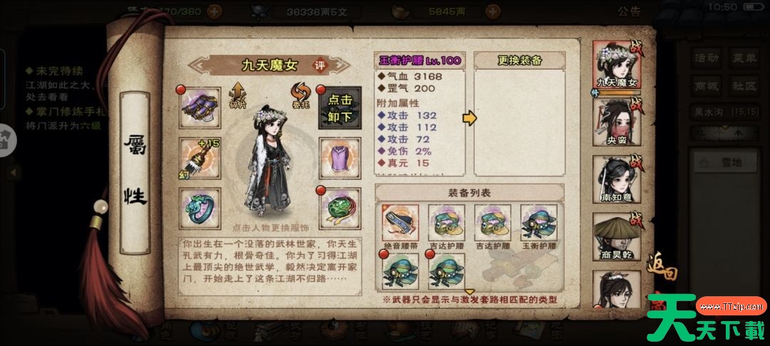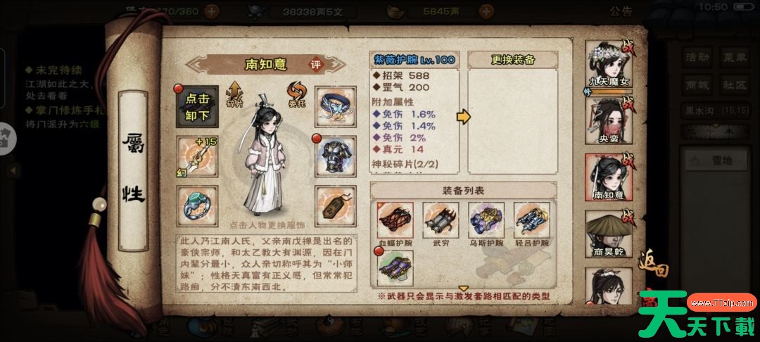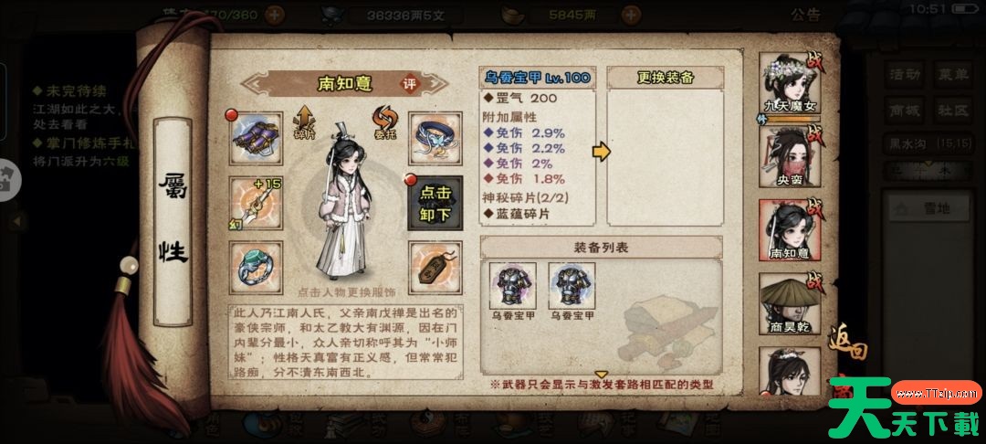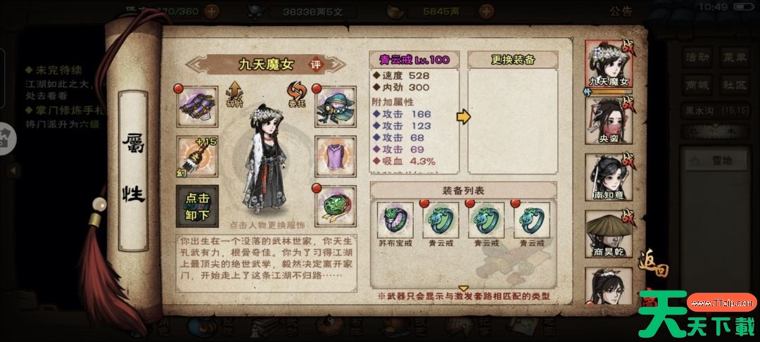 只需要到龙泉看就可以,这里推荐附加攻击的给主角用,主角有合道,属性点也多,不缺真元,用攻击能最大化提升实力。