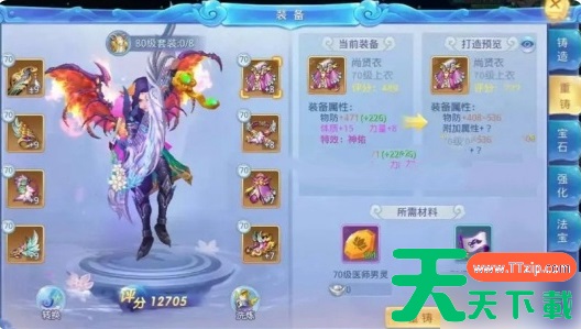 6、武器养成:选择合适的强化宝石即可提高其升级和属性,其中推荐治疗(武器),法防(戒指、项链、衣服、护腿),速度(护腕、鞋子),气血(腰带)。