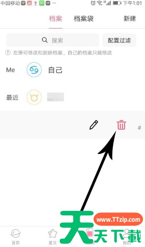 打开准了app以后,点击“档案”菜单后,就可以看到自己创建的所有档案,包括自己的和他人的档案 想要删除为他人创建的档案时,点击要删除的档案,并同时向左滑动 滑动至左端后,界面中出现垃圾桶图标,这时点击此图标 系统弹出确认删除此档案弹窗后点击“确认”按钮,这样为他人创建的档案即可被删除掉 想要删除自己创建的档案时,点击此档案并向左滑动 此时界面中出现圆珠笔图标和垃圾桶图标,这时点击圆珠笔图标 打开修改出生信息界面后,对个人信息进行逐一修改,最后点击保存,最终实现删除个人档案的目的 @天天资源网TTzip 除特别注明外,本站所有文章均为 天天下载 原创,转载请注明出处来自 https://www.ttzip.com/247060.html