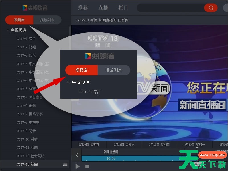 央视影音(cbox)是一款完全免费、功能全面的电视直播软件,它为用户提供电视直播、点播回看、时移播放等综合服务。央视影音软件采用了DXVA、CUDA、QuickSync 等技术,在观看4K直播时CPU占用低于10%,老旧设备也可以流畅运行。此外,软件中所有直播与点播内容均免费开放,无会员门槛、无强制付费内容。 央视影音怎么看直播?央视影音看直播的方法1、进入央视影音软件,点击左侧“视频库”中的频道进入观看。 2、接着界面上方“直播”,再点击对应的频道LOGO观看即可。 3、还可以点击选择“直播节目单”观看对应的直播。 @天天下载TTzip 除特别注明外,本站所有文章均为 天天下载 原创,转载请注明出处来自 https://www.ttzip.com/247069.html