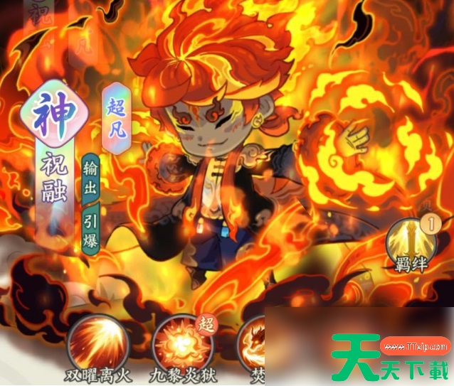 祝融是游戏内早期即可通过7日限时活动获取的神品输出型伙伴,定位为站桩AOE与单体爆发兼备的法系主力。其专属皮肤“炎煌神君”可额外提升3%基础攻击及1200点固定攻击属性。关键装备“熔火之心”需通过凌霄宝集招募获取,该法器对技能有显著加成:装备后,“九黎炎狱”与“焚烬”将附加50%攻击力伤害;随阶数提升,3阶增加10%、6阶增加100%、9阶再额外提升20%伤害增幅,形成阶梯式成长曲线。