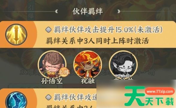 其羁绊组合中,与孙悟空、金灵圣母及主角小凡同时上阵可触发10%最大生命值加成。前期常用组合为共工+钟馗+申公豹:共工承担伤害并施加冰冻控制,钟馗补充减益与定身,申公豹负责群体压制与破防。进入中期后,可将钟馗替换为嫦娥,增强团队持续作战能力;后期再引入玄女、大日金乌等高爆发角色,形成“控场—减防—爆发”三位一体的成熟体系。