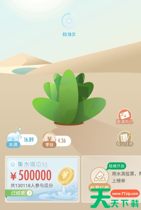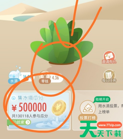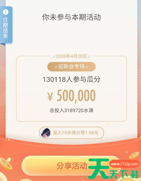 收集10滴及以上水滴可以参加“集水滴瓜分活动”,从而可以获得零钱,投入的水滴越多分的零钱越多。