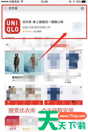 第一步、打开手机应用商城,搜索“优衣库”,选择*个进行获取安装;