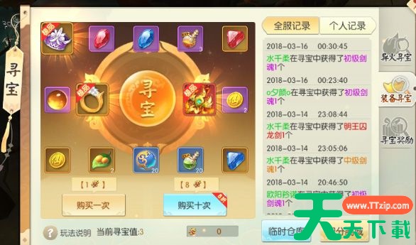 在“异火寻宝” “装备寻宝”中寻宝次数达到指定次数,便可以领取超级丰厚的奖励哦~
