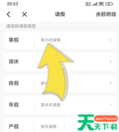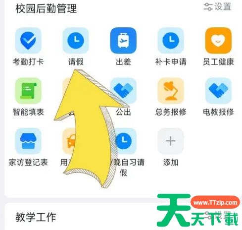 在钉钉页面,点击工作台。 之后寻找到请假,点击进去。 在请假页面,使用事假来演示,点击进去。 选择开始时间和结束时间,键入请假事由。 随后点击提交按钮,即可完成请假申请。 @天天资源网TTzip 除特别注明外,本站所有文章均为 天天下载 原创,转载请注明出处来自 https://www.ttzip.com/247383.html