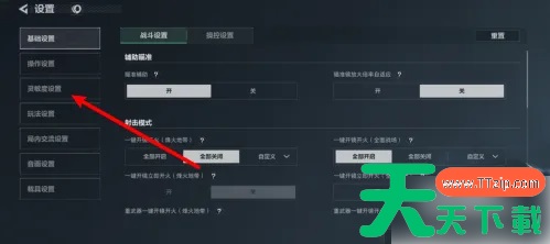 打开游戏界面,点击右上角的设置。 进入设置界面,点击灵敏度设置。 进入灵敏度设置界面,滑动滑块即可设置灵敏度。 @天天资源网TTzip 除特别注明外,本站所有文章均为 天天下载 原创,转载请注明出处来自 https://www.ttzip.com/247404.html