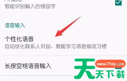 首先,在我的页面,点击顶部右侧方位的六角形图标。 进入百度输入法页面,点击“常规设置”。 接下来,点击“个性化语音”选项。 最终,点击“打开语音个性化”右侧的滑块开关。 @天天资源网TTzip 除特别注明外,本站所有文章均为 天天下载 原创,转载请注明出处来自 https://www.ttzip.com/247411.html