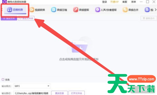1、打开软件,找到并点击界面中的音频转换功能,进入转换页面。