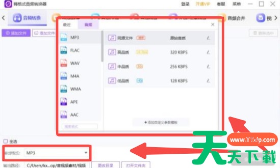 3、文件添加完成后,点击格式设置,在弹出窗口中将目标格式选为 MP3。