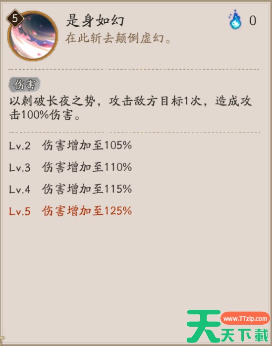 Lv.5伤害增加至125%