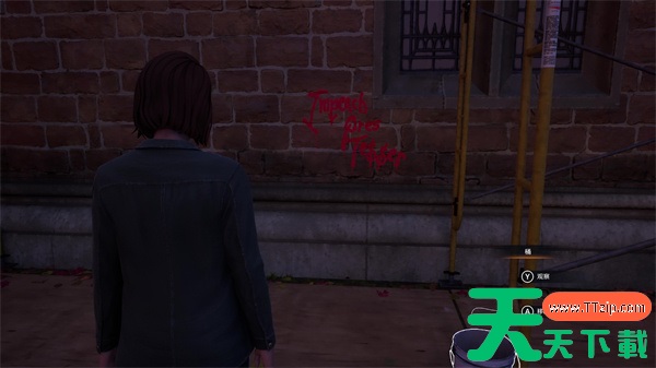 ① 找到蓝色移动厕所左边的墙上的涂鸦并互动