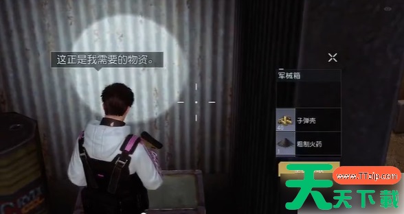2,移动角色前进然后找到这个角落后,打开这个军械箱获取极奖励,粗制火药x1、小袋银币x2、子弹壳x40、沙漠探索积分x1,这边第二个箱子找完了。