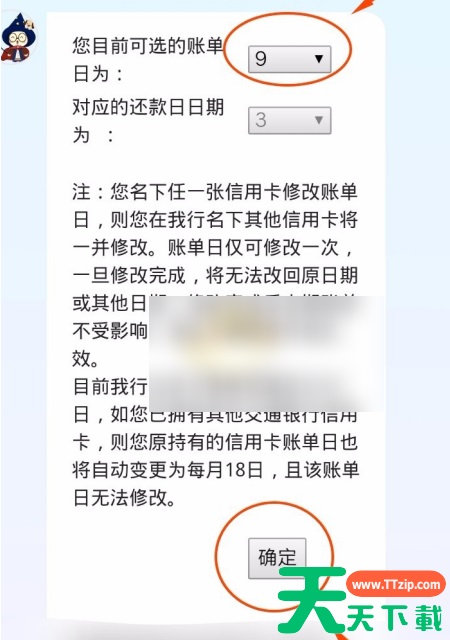 1、打开软件,点击右下角“我的” 2、点击右上角“客服” 3、点击“在线客服” 4、对话框中输入“账单日更改”,点击“发送” 5、选择可选账单日“日期”,点击“确定”即可。 @天天资源网TTzip 除特别注明外,本站所有文章均为 天天下载 原创,转载请注明出处来自 https://www.ttzip.com/247721.html
