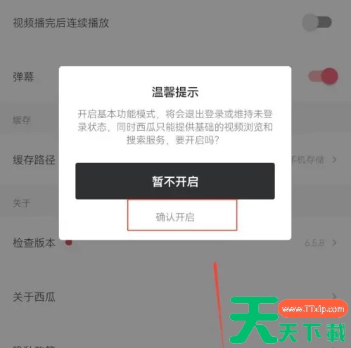 首先打开西瓜视频,点击右下角的【设置】 然后点击开启【基本功能模式】 最后点击【确认开启】即可开启西瓜视频搜索视频功能 @天天资源网TTzip 除特别注明外,本站所有文章均为 天天下载 原创,转载请注明出处来自 https://www.ttzip.com/247729.html