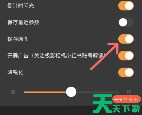 先打开相机进入,点击下面的菜单图标 展开更多功能后,点击下面的设置图标进入 进入设置功能列表中,将【保存原图】后的按钮打开即可 @天天资源网TTzip 除特别注明外,本站所有文章均为 天天下载 原创,转载请注明出处来自 https://www.ttzip.com/247743.html