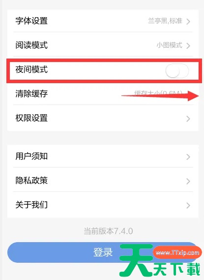 第一步: 进入电网头条APP新闻页面,点击底部【我的】。 第二步: 在我的页面,点击【设置】。 第三步: 进入设置页面,点击开启【夜间模式】右侧的开关。 第四步: 已成功开启夜间模式,完成本次操作。 @天天资源网TTzip 除特别注明外,本站所有文章均为 天天下载 原创,转载请注明出处来自 https://www.ttzip.com/247767.html