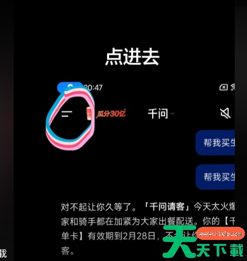 4、让小伙伴下载千问app并打开,找到页面上方的三条杠,点击打开,如下图所示。